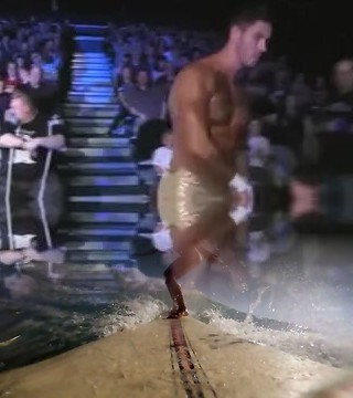 Tattooed Irish Muscle Wrestler in Gold Trunks vs Chunky Heel