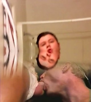 Obese bear rims before bareback in shower